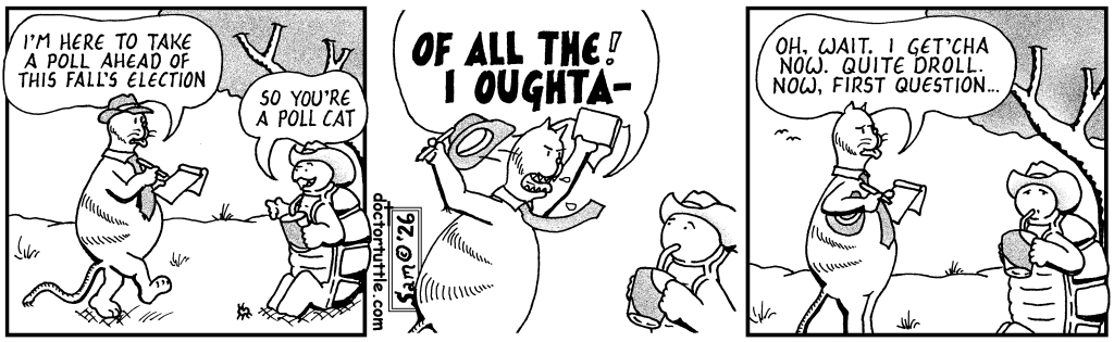 Posted on April 19, 2026April 4, 2026Author samwhi371Categories Politics, TuttleTags #comic, #DoctorTuttle, #humor, #polecat, #politics, #poll, #Tuttle